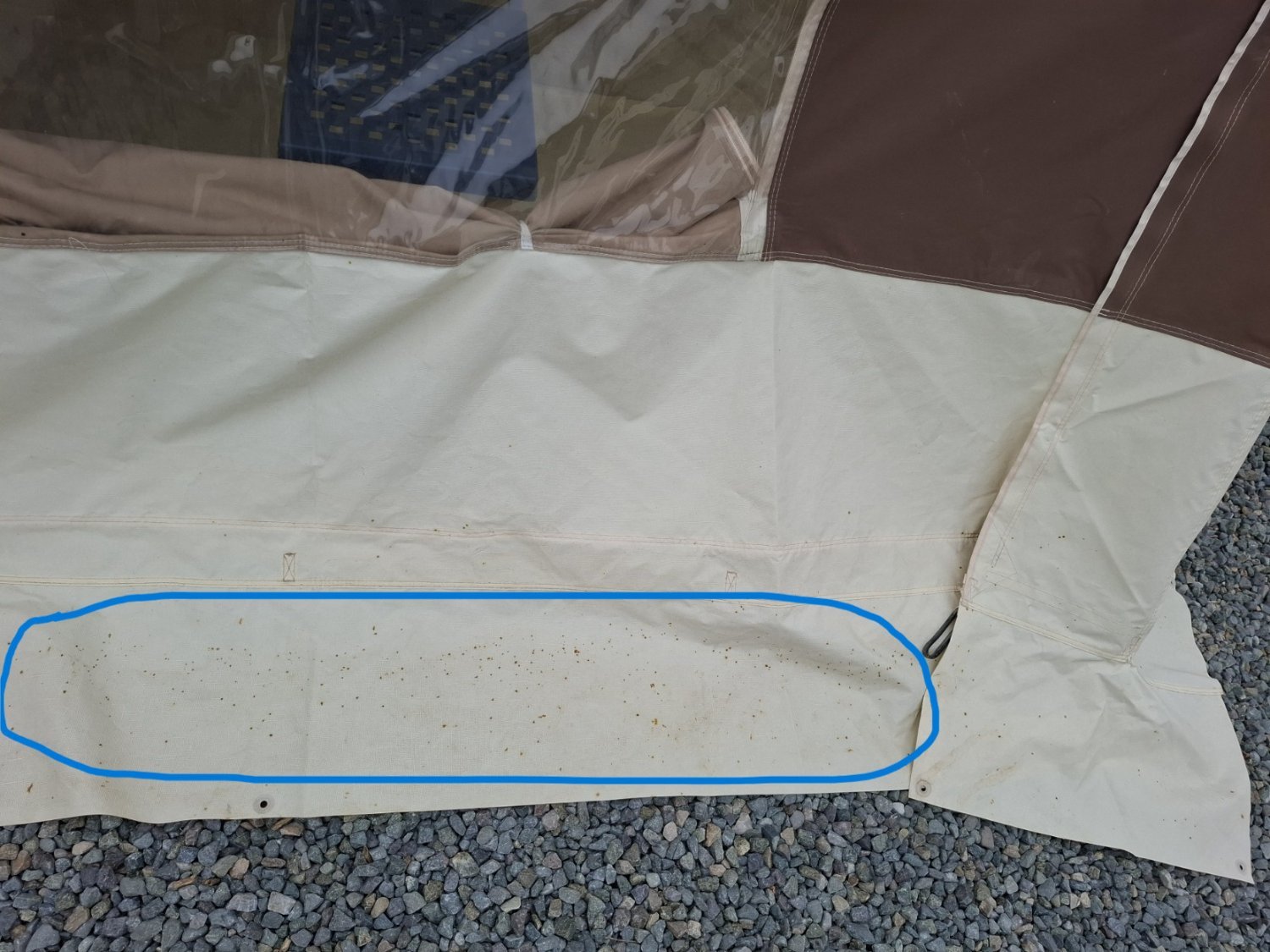 Nous notons des tâches de rouille sur la bavette latérale en PVC (cf. photos)