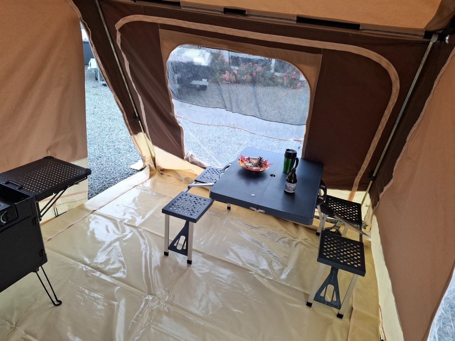 Le tapis de sol en PVC assure l'étanchéité complète de votre installation.