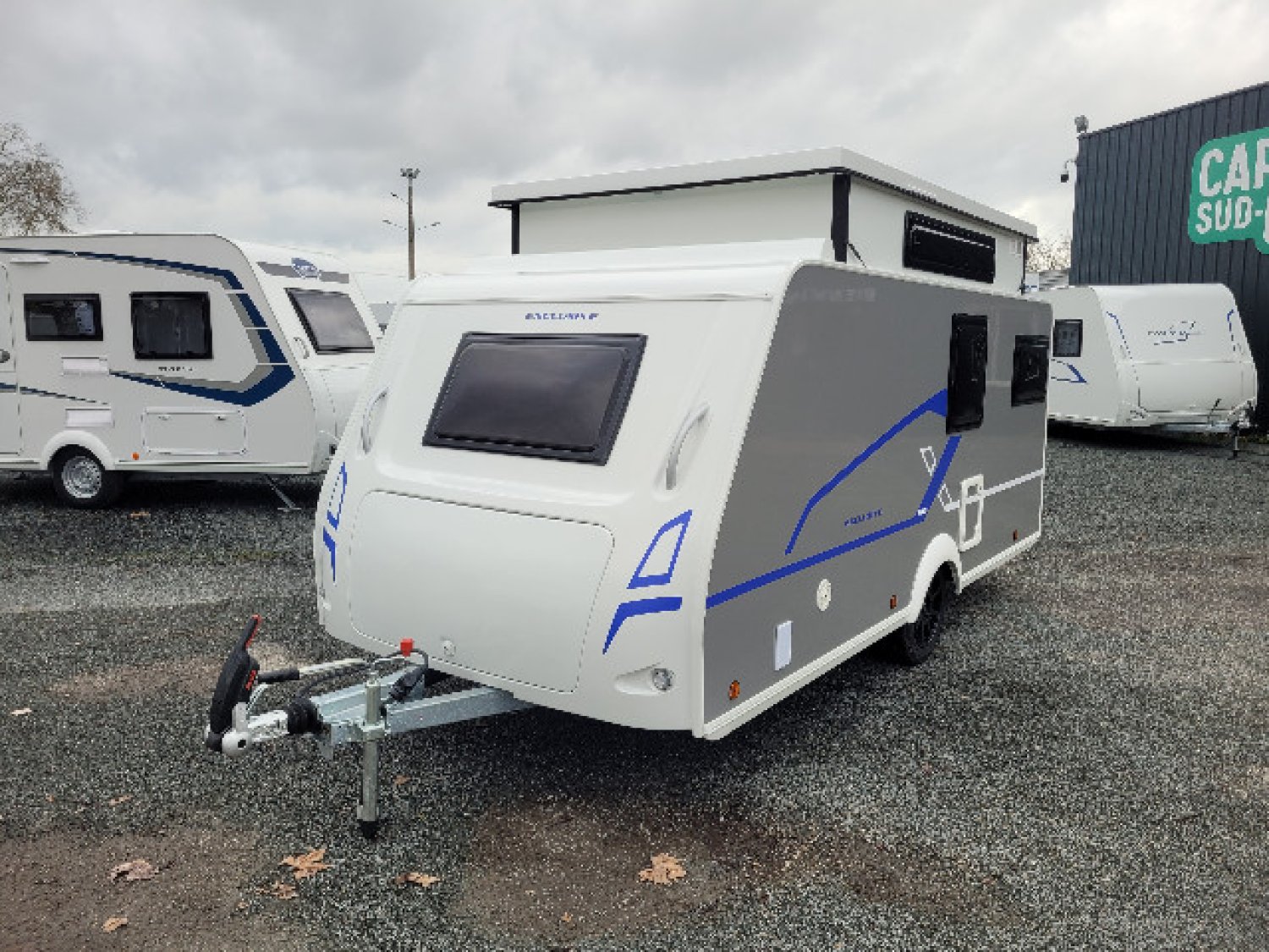 "Découvrez la nouvelle SILVER 380 Exclusive Line, cette petite caravane à toit relevable vous permet une facilité de déplacement et une traction beaucoup plus simple grâce notamment à sa hauteur de seulement 1,98m. Profitez du confort d'une grande caravane avec un salon face-face, cuisine latérale, un coin salle de bain et un lit transversal sur la partie avant. Sa finition spéciale exclusive line au design unique finira de vous séduire.