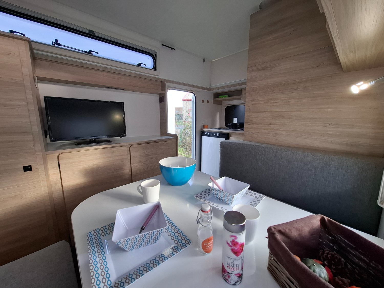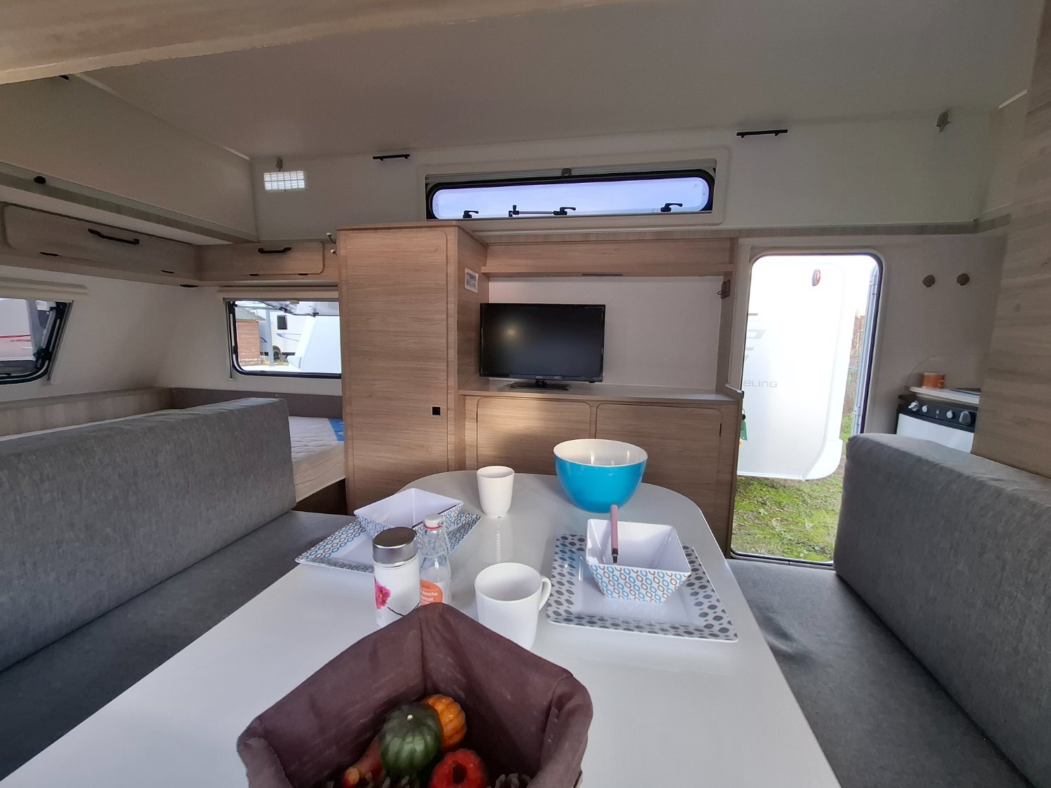 Caravane surbaissée parfaitement équipée : déplace caravane, relevage électrique du toit, équipement douche, chauffage, store avec 1 côté, porte moustiquaire. N'attendez pas pour la choisir.