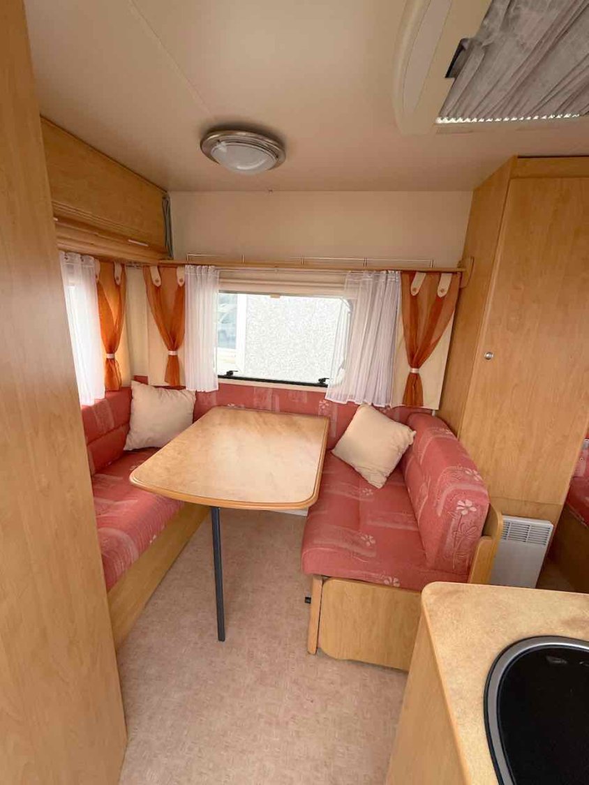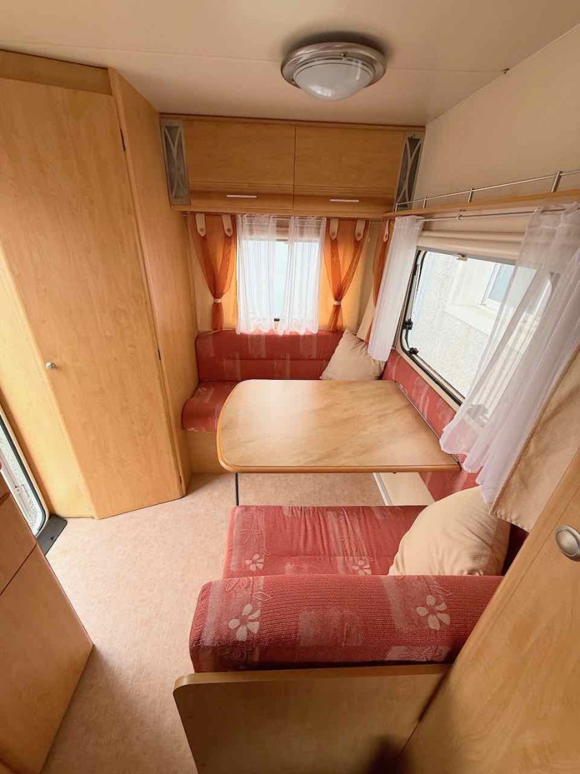 - un salon pour 4 à l'entrée de la caravane, dînette transformable en lit supplémentaire 2 places (125/110 x 190),