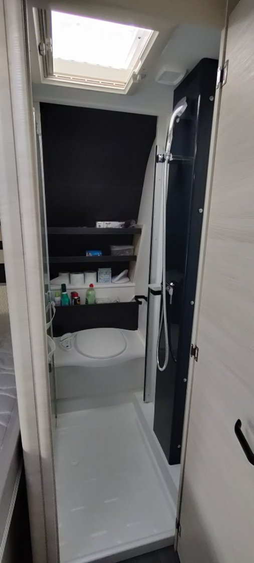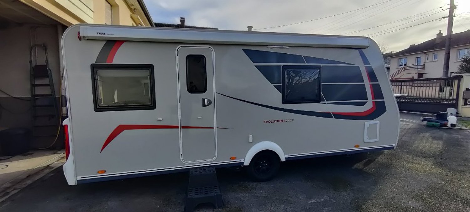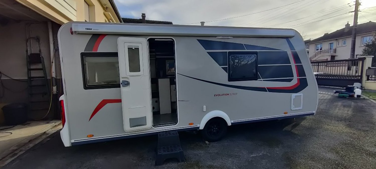 Equipements de série + moovers truma automatiques + store thule 5200 de 4,5m (tendeurs intégrés) + ultraheat truma (chauffage électrique intégré au chauffage gaz d'origine) + jantes alliages noires + cache timon antivol et roue de secours, anti-lacets Alko.