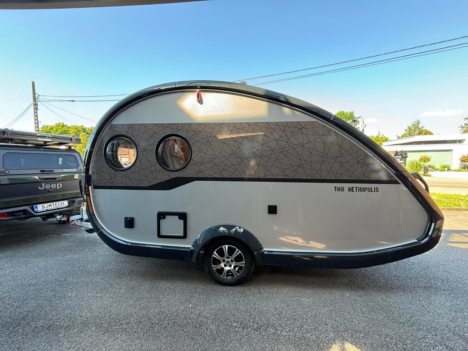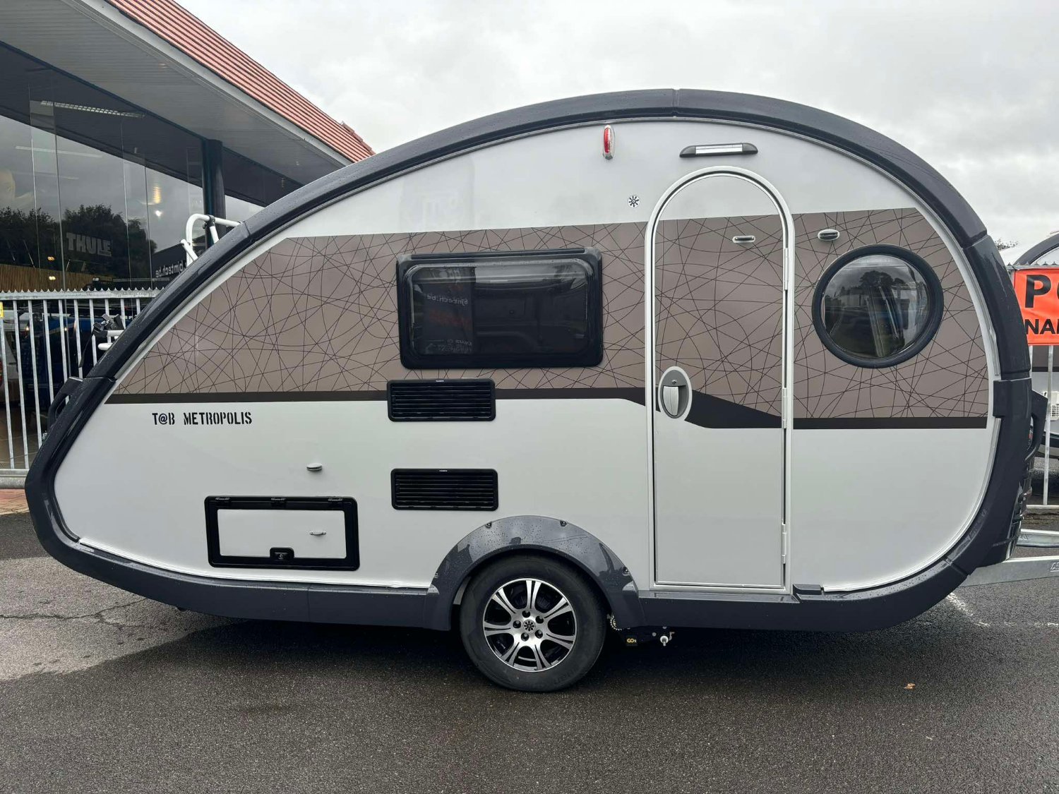 Venez découvrir cette magnifique caravane au look "teardrop" T@B 400 Metropolis, comme neuve (2024) et bien équipée, avec lit fixe et espace salle de bain.