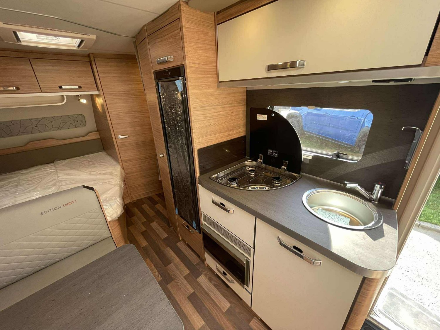 - Modèle spécial d’équipement “EDITION [HOT]” : parois latérales en tôle lisse, vérins stabilisateurs lourds, stabilisateur, cache-timon, baie et lanterneau supplémentaires, portillon de service supplémentaire, chauffe-eau 230V TRUMA Therme, réservoir eaux usées à roulettes (25L), moustiquaire de porte, stores combinés occultant et moustiquaires, éclairage LED supplémentaire, sélection tissu "Edition [HOT]" ...