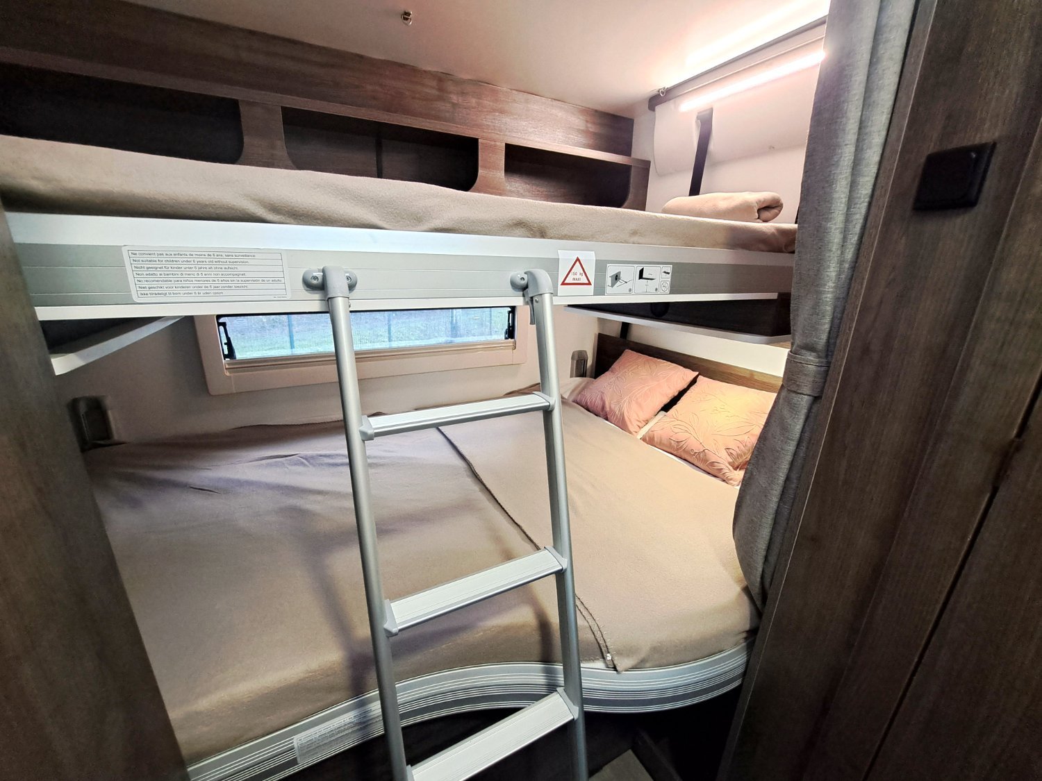 Lit arrière 2 couchages, réglable en hauteur sur soute